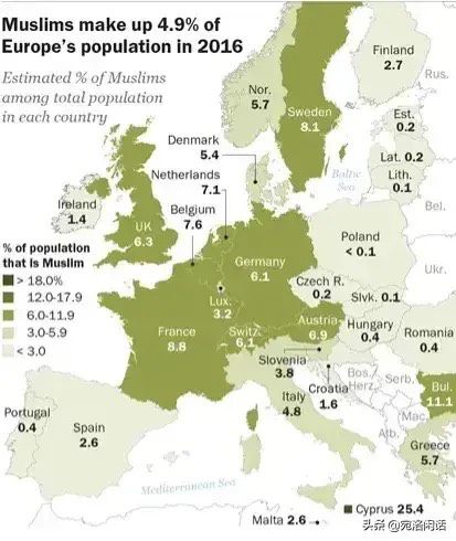 2016 Muslim Percentage in Europe