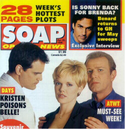 The soaps is a short way of referring to soap operas. A soap opera is a television or radio series about the imaginary lives of a group of people. The series are called soap operas because when they first appeared in the US in the 1930s they were sponsored by soap manufacturers. The word opera is used to suggest that the programmes are often too emotional (since in opera, singers express a lot of emotion).