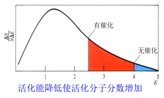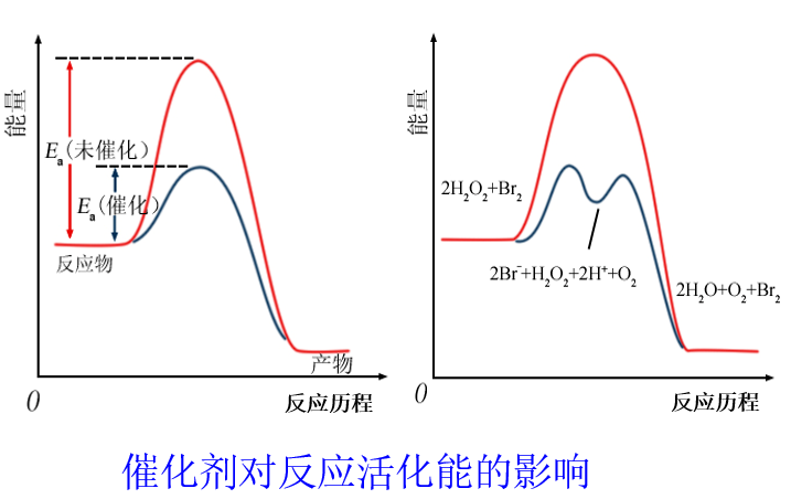 实验结果表明,催化剂参与的分解反应,改变了反应机理,降低了反应活化能,增大了活化分子分数,反应速率显著增大。