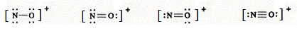因此,(d)才是 NO + 离子的 Lewis 结构式。应该注意的是,电荷标在了物种的右上角,表示该电荷为整个物种所有而不属于该物种的某个原子。