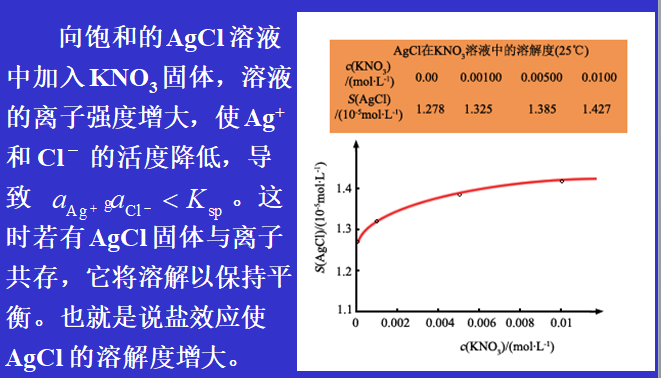 在 1 mol·dm–3 的盐酸中,AgCl 的溶解度为1.8×10–10 mol·dm–3 。它仅是 AgCl 在纯水中溶解度1.3×10–5 mol·dm–3 的 7.2 万分之一。