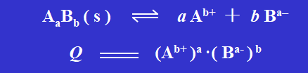 当 Q= Ksp 时,饱和溶液与沉淀物平衡;