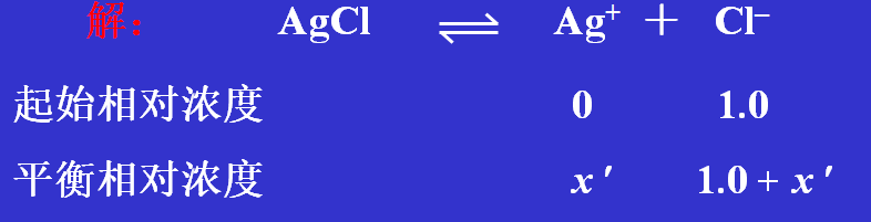 例: 求在 1.0 mol·dm–3 的盐酸中,AgCl 固体的溶解度。