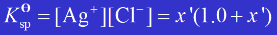 例:已知 AgCl 的 Ksp θ = 1.8×10–10,求 AgCl 的溶解度