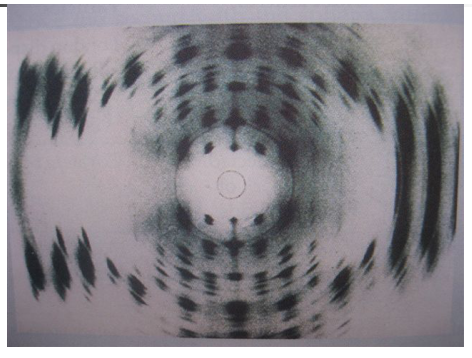 从DNA晶体的XRD衍射条纹推断出DNA的双螺旋结构(1950年代初)