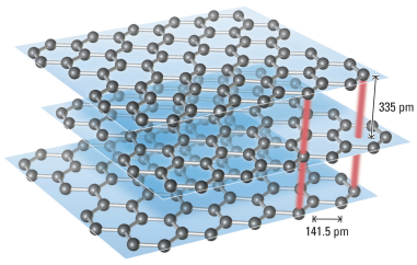 每层内:每个C作sp2杂化,与另3个C以共价键结合,并有离域p键(整层上、下)