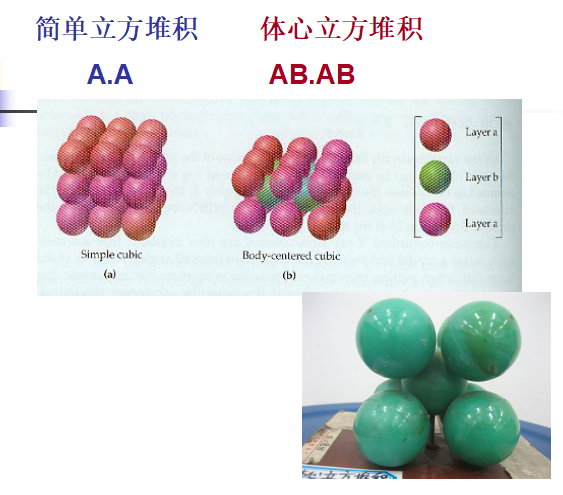 2. 体心立方堆积(body-centered cubic packing): AB.AB