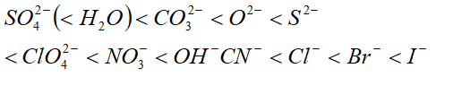 变形性不大,且中心原子氧化数↑,该复杂离子变形性↓。 常见阴离子变形性顺序: