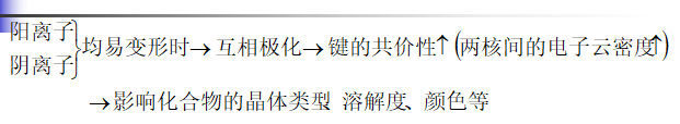 离子极化力和离子变形性影响因素及对化合物性质(化学键型、晶体类型、水溶度、颜色、水解能力、酸碱性)的影响。