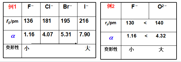 (2)外层电子构型相同,Z 相同,则r ­,变形性­
