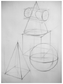3、练习单个几何体的写生到多个几何体的组合的写生。