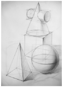 (四)、石膏几何体结构素描中线的写生方法