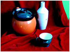 质感主要是对物体的软硬、粗糙、光滑、细腻、颜色的深浅等方面的表现,如瓷器的坚硬细腻、玻璃的透明、布的柔软等。对不同质地的静物在表现过程中,可以选择不同的表现手法。