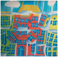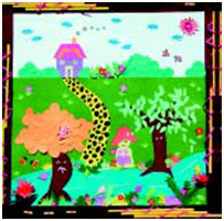| 3. 装饰肌理 肌理是用来表现对象质感特征的造型手段。为了获得独特的视觉效果(所谓视觉触感),我们往往运用肌理效果来进行色彩表达,这是装饰性色彩的又一显著特点。肌理效果的制作有多种手段,其中喷溅、拓印、揉搓上色、刮、刻、滴彩、拼贴等常用的表现技法。这些特殊技法拓宽了装饰性色彩的表现力。 |
