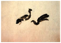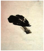 画鹭鸶从身体开笔,在设计好形体动作后,先用大笔触定位好鹭鸶的身体造型,在这个定位笔中,可以是活墨大笔单笔成就,也可以用多笔点厾出身体造型,但要求用笔有浓淡变化。