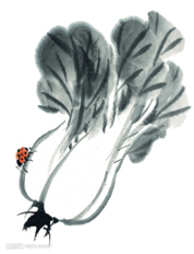 1.临摹写意白菜。