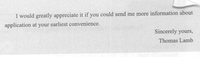I would greatly appreciate it if you could send me more information aboutapplication at your earliest convenience.