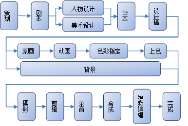 动画制作通常要经历前期制作、中期制作和后期制作3个阶段。