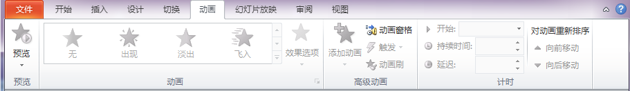 对幻灯片的内容进行动画设置,可吸引观众注意力,增强互动效果。可先选择幻灯片中需要增加动画的对象,再切换到“动画”选项卡,如图所示: