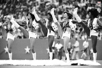 图7为NFL历史上第一支专属啦啦队—达拉斯牛仔啦啦队,1978年9月5日在进行高踢舞蹈表演。