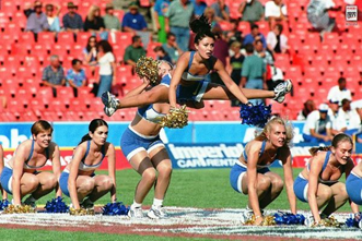 20世纪90年代以后随着啦啦队的飞速发展,全美各州也成立了中学生协会(NFHS)、大学啦啦操协会(UCA)、联合会(NF)、大学舞蹈协会(UDA)、洲际啦啦操协会(NCA),它们之间无上下级关系,属平级地位,并且建立了自己的啦啦队网站,同时也开展了很多全国性的大赛。美国啦啦操公开赛和舞蹈锦标赛(US OPEN CHAMPIONSHIPS)、全美啦啦操和舞蹈锦标赛(US NATIONAL CHAMPIONSHIPS),并且制定了比较完善的竞赛和安全规则。参加美国高规格的大赛并获得冠军的啦啦队将享有极高的荣誉。与此同时职业啦啦队也开始陆续登陆NBA等美国其他的体育联盟。图12为90年代的超级12国橄榄球赛,南非对阵澳大利亚,南非啦啦队员在赛场上进行啦啦队表演。