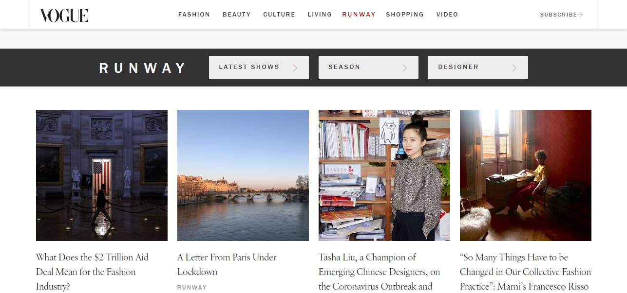 ▼ 世界顶级时尚媒体。RUNWAY板块提供各大时装周全面高清图片。