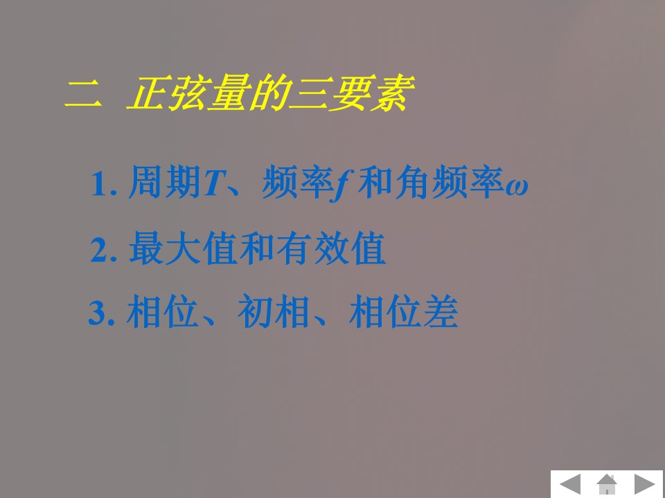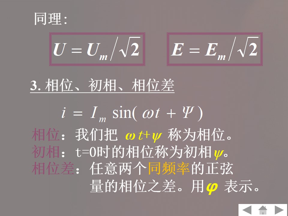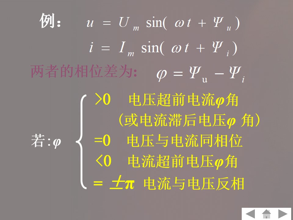 3)理解周期、频率、角频率、相位、初相位、相位差的概念及相互关系。