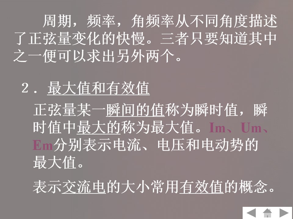2)理解瞬时值、最大值与有效值的概念及相互关系。