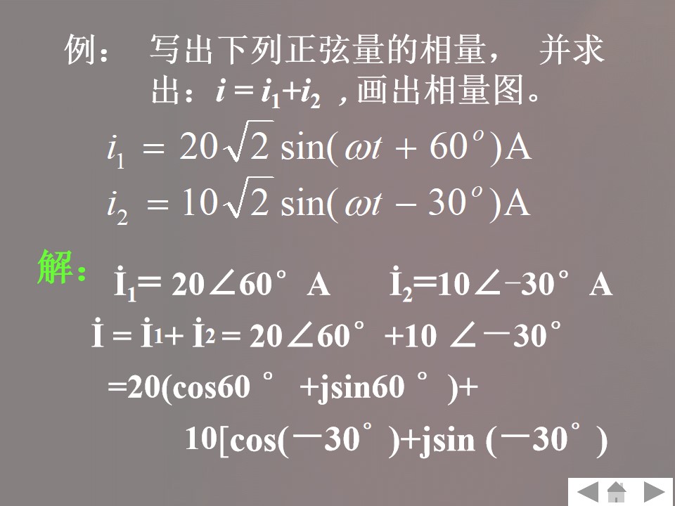 5)掌握用相量法计算简单正弦交流电路的方法,能把同频率正弦量进行相互加减。