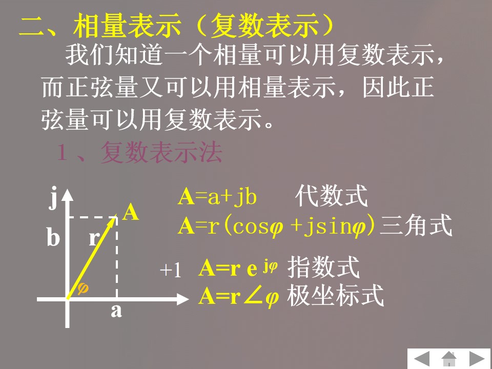 4)理解正弦量的相量表示形式,能用 相量图表示各正弦量的大小和相位关系。