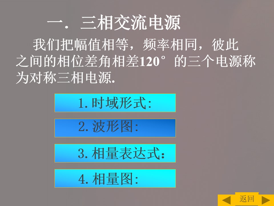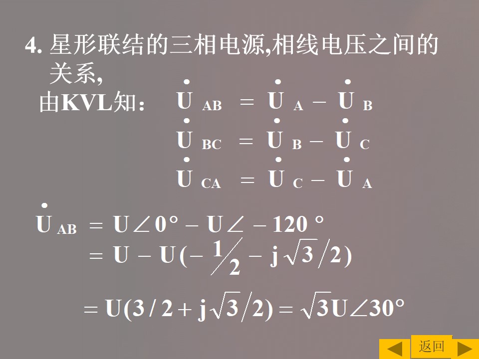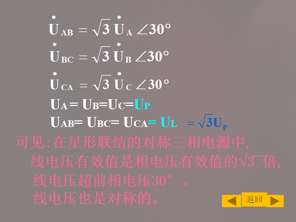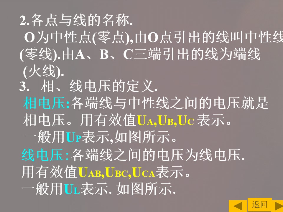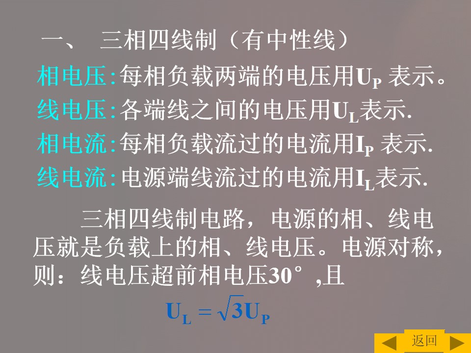 2)掌握三相交流电源的连接方式以及线电压与相电压之间的关系,并能进行简单计算。