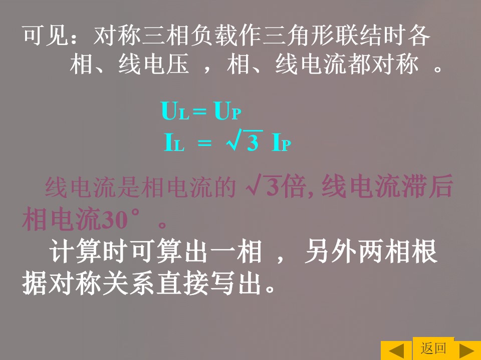 3)掌握三相负载的连接方式以及线电流与相电流的关系,并能进行简单计算。
