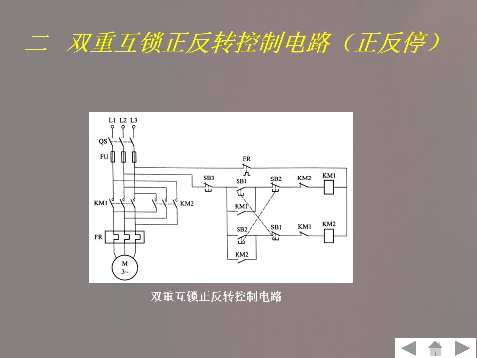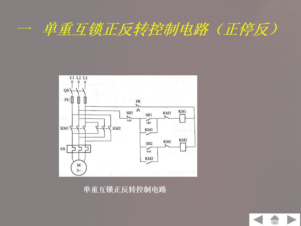2)掌握三相异步电动机正反转控制电路,电路图及分析。