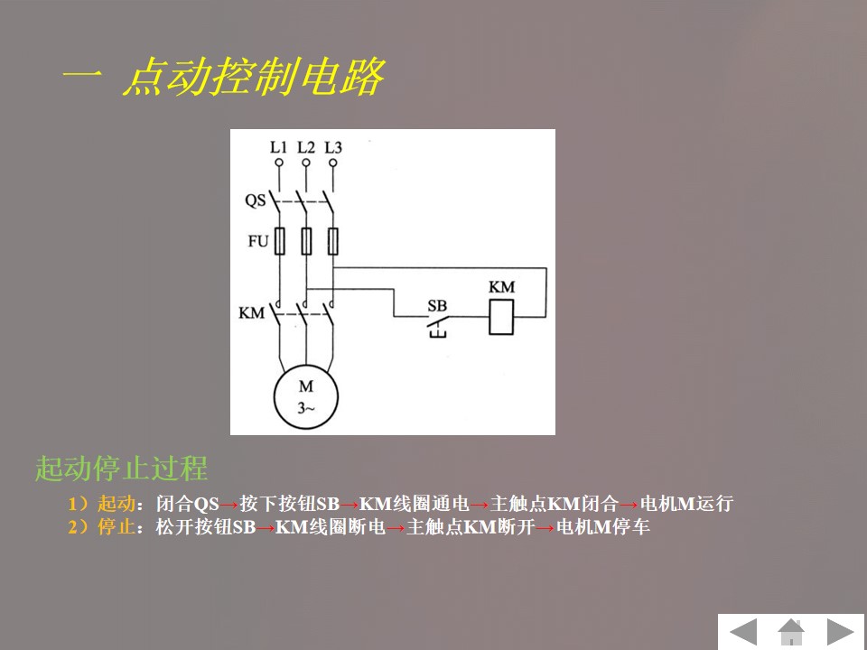 1)掌握三相异步电动机直接起动控制电路,电路图及分析。