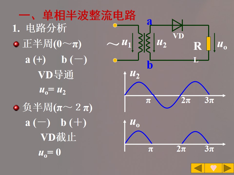 2)掌握单相半波整流电路的电压与电流关系,并能进行简单计算。