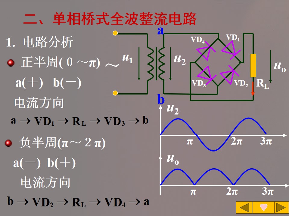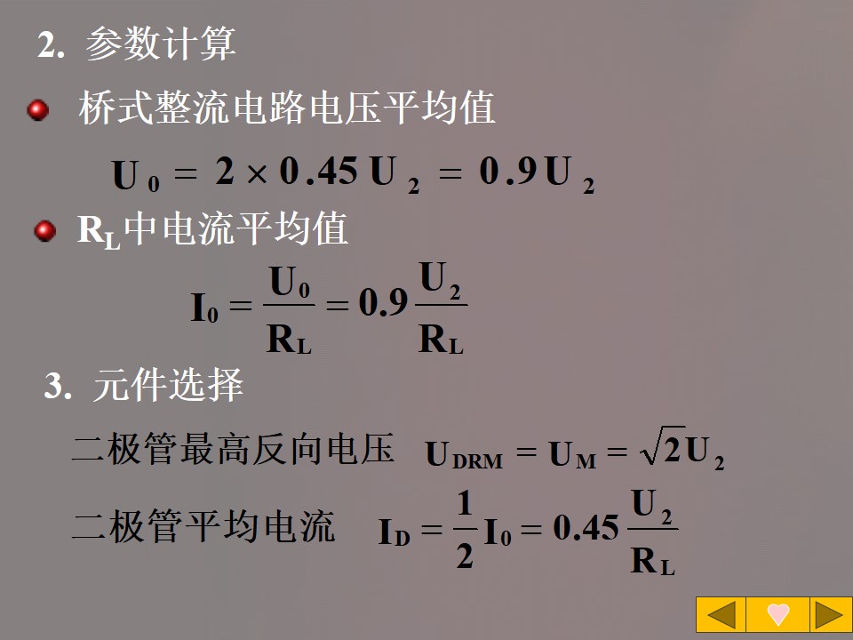 3)掌握单相桥式全波整流电路的电压与电流,并能进行简单计算。