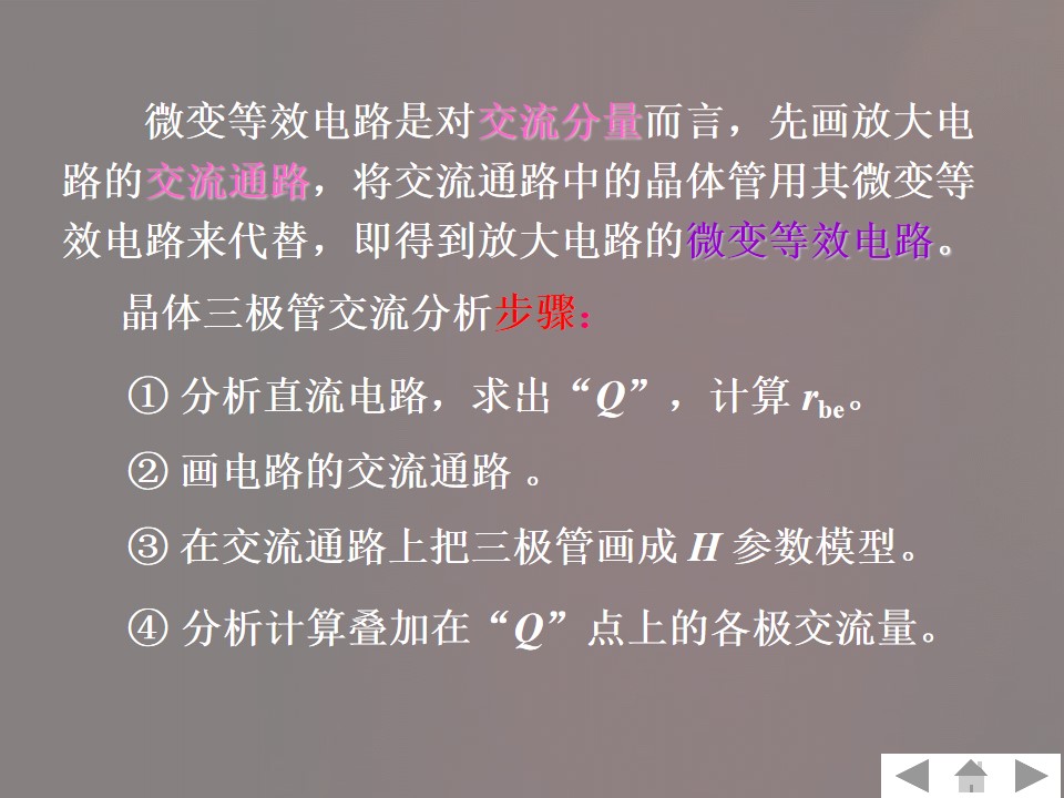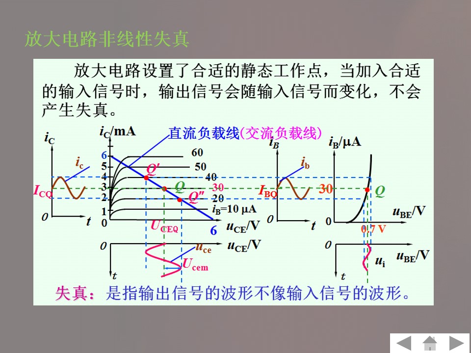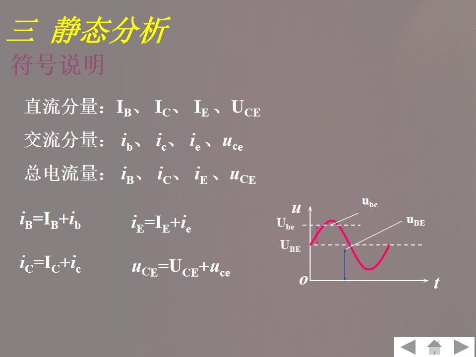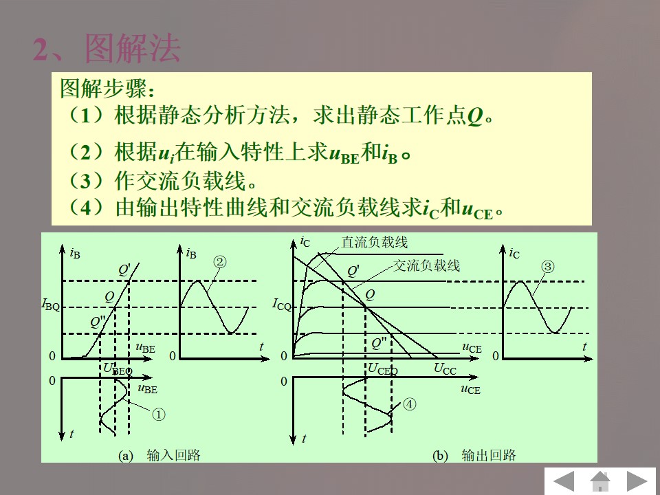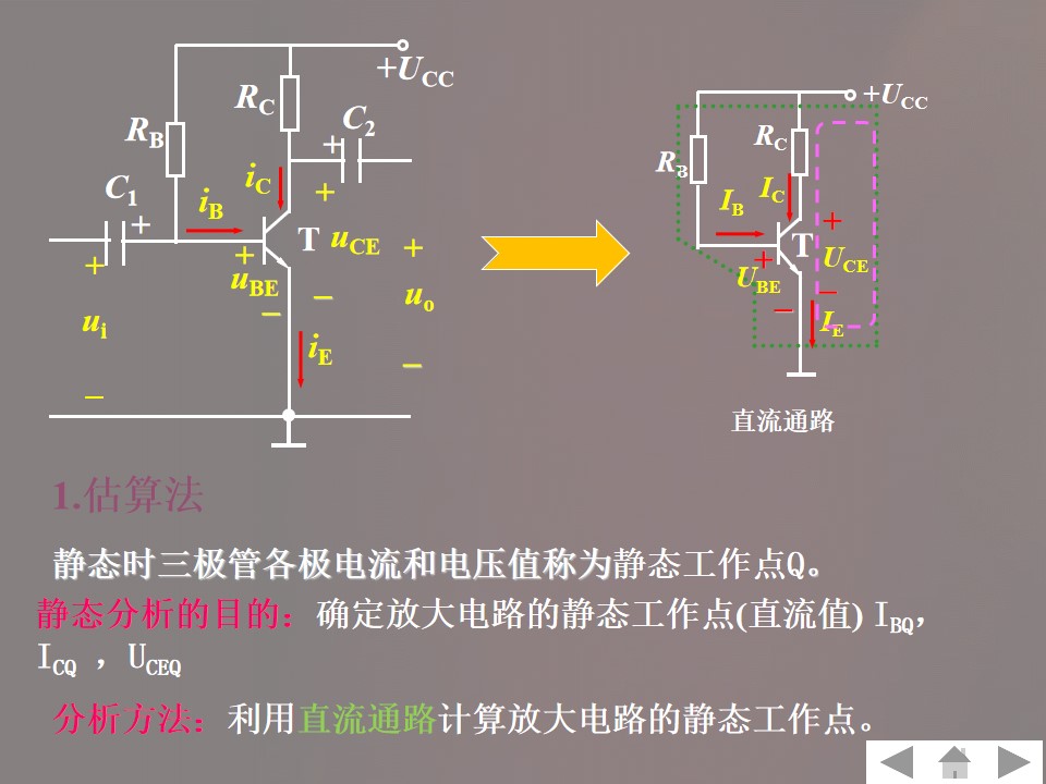 2)掌握共发射极放大电路组成、工作原理、静态和动态分析方法。