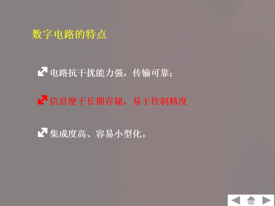 认知数字信号与数字电路的特点。