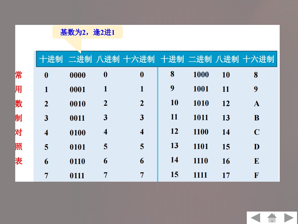 掌握二进制数与十进制数的转换。