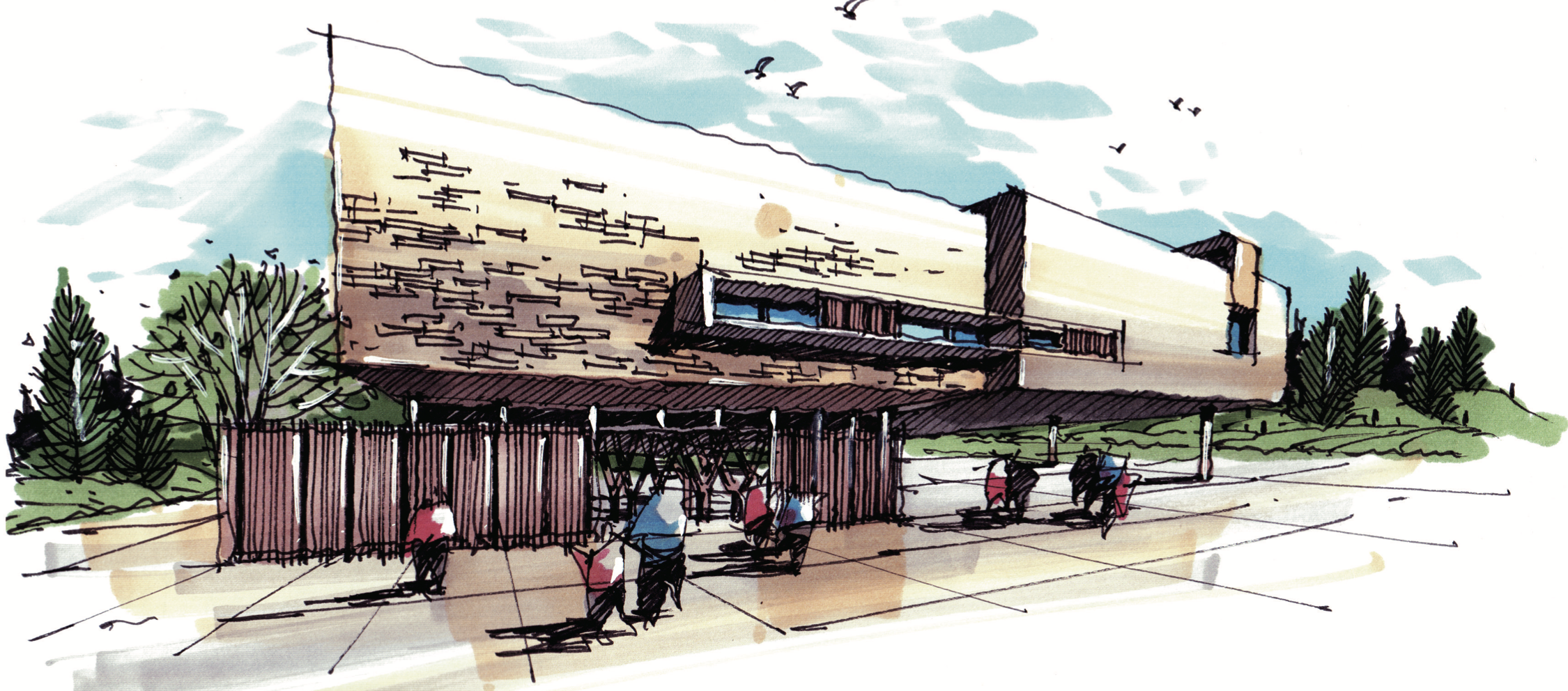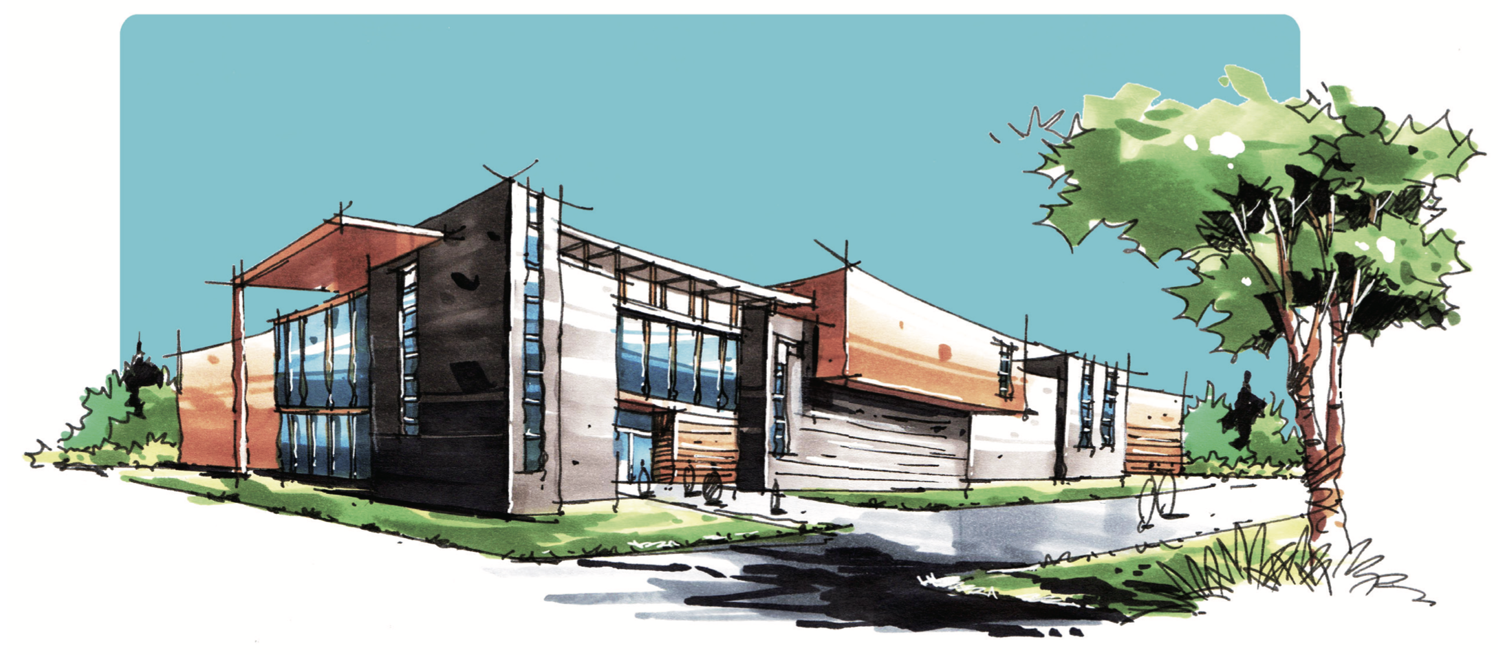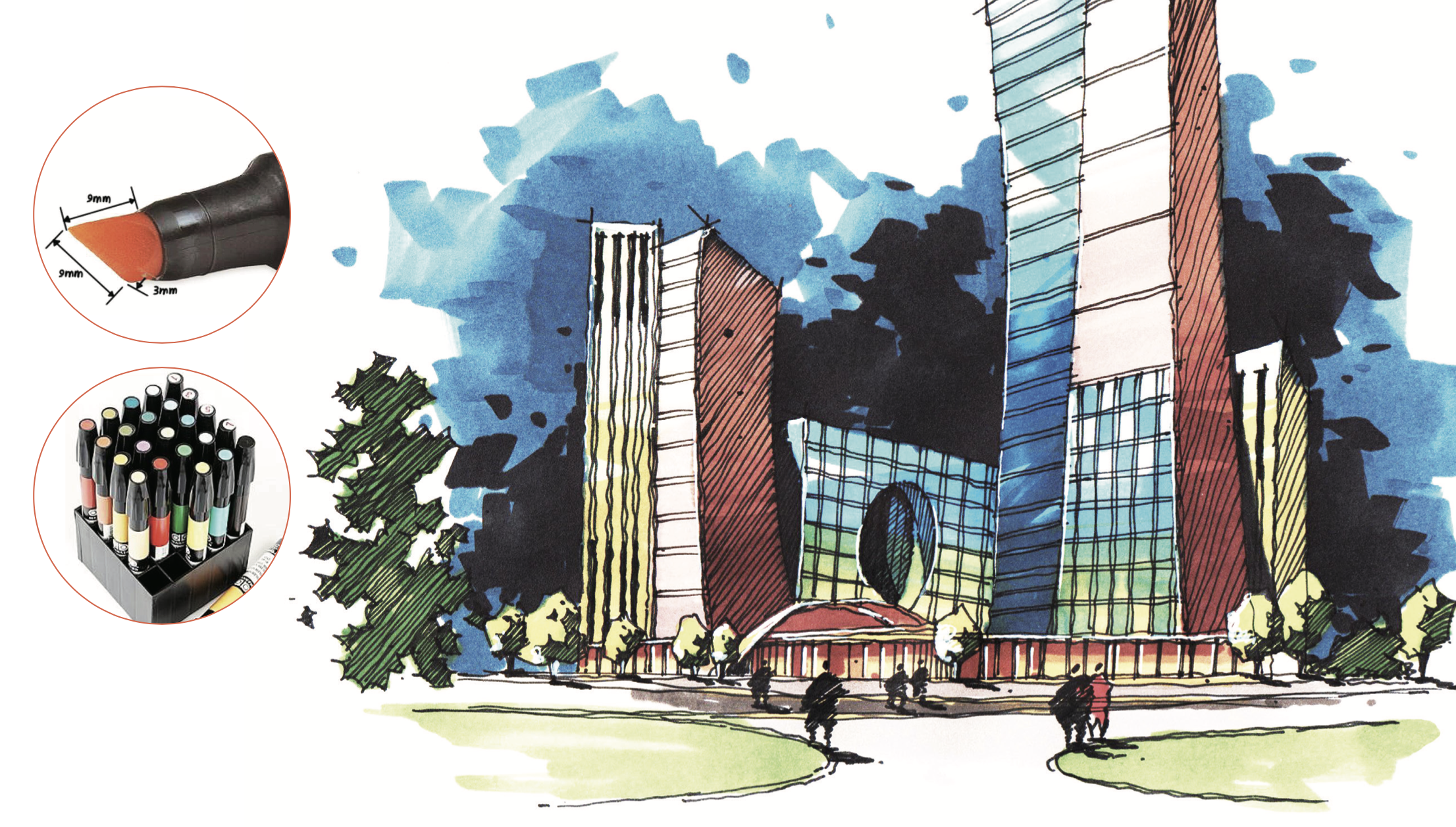 手绘效果图是一种快速表达的绘图模式,因而在效率居于第一位时我们可以以最简单的方式进行,甚至一支常用的签字笔就可以为我们完成一幅手绘图了。但更为完整的手绘效果它需要有色彩呈现,那么除去描线工具就还必须有色彩工具了。各种水性或油性的马克 笔是最常见的色彩工具,配合马克笔一起被广泛运用的手绘色彩工具还有彩色铅笔。纸张的挑选,一般设计师最方便 的绘图纸来源就是打印用地复印纸了, 通常A3 纸是最常见的手绘图纸张尺寸, 也便于线稿的复印与再次上色。另外其 他的辅助工具在初学阶段也是可以多做准备的,例如尺子、铅笔、橡皮擦、涂改液等等......