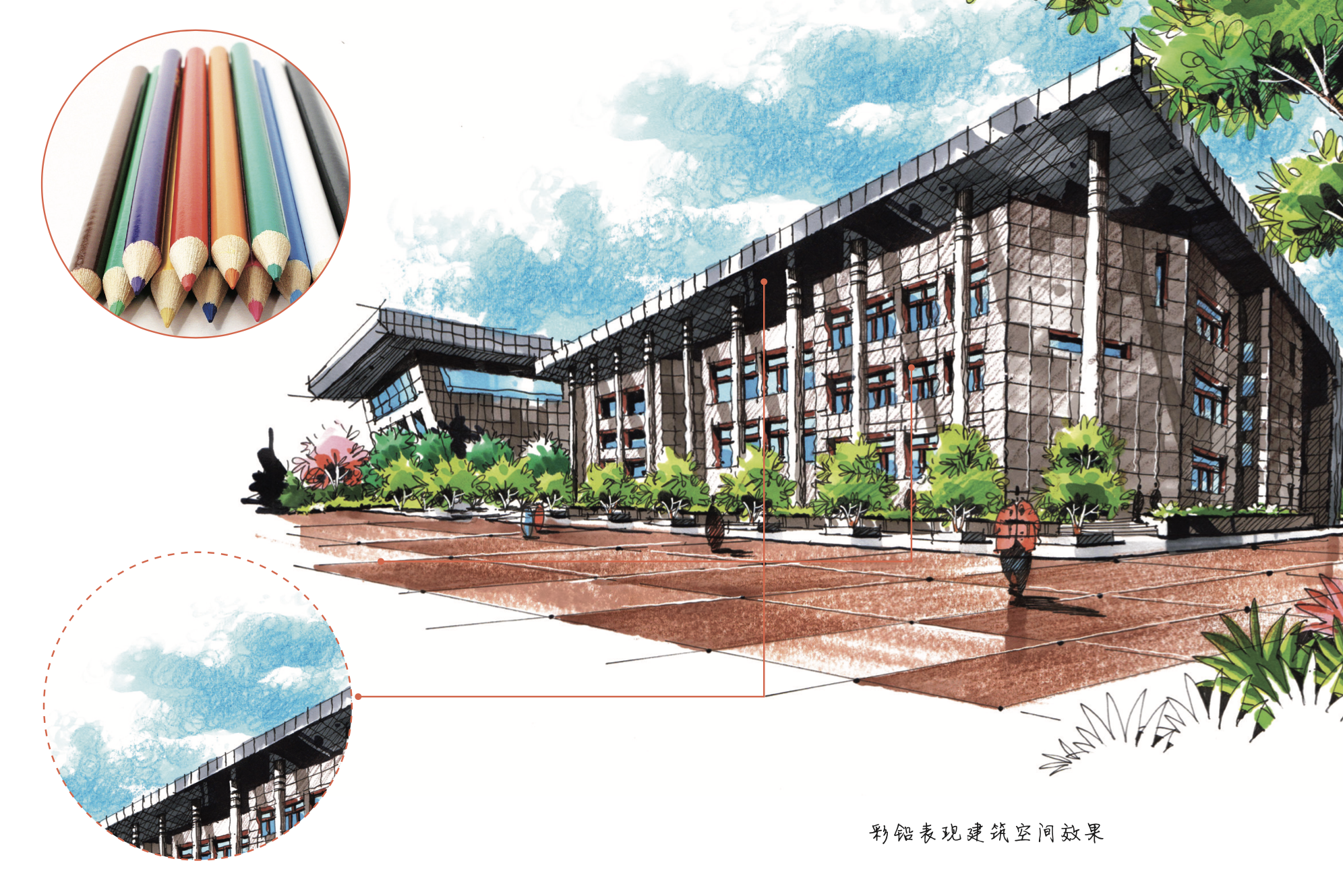 有时候为了实现喷画般细腻的质感,设计师将彩色铅笔进行削 粉,利用棉签或海绵蘸粉进行涂抹。 当然同样的效果也有设计师利用粉笔条或其它类似的色彩工具进行运 用,总之,无所不有,任何优秀的效果都是在各种彩色和运用中得来 的。