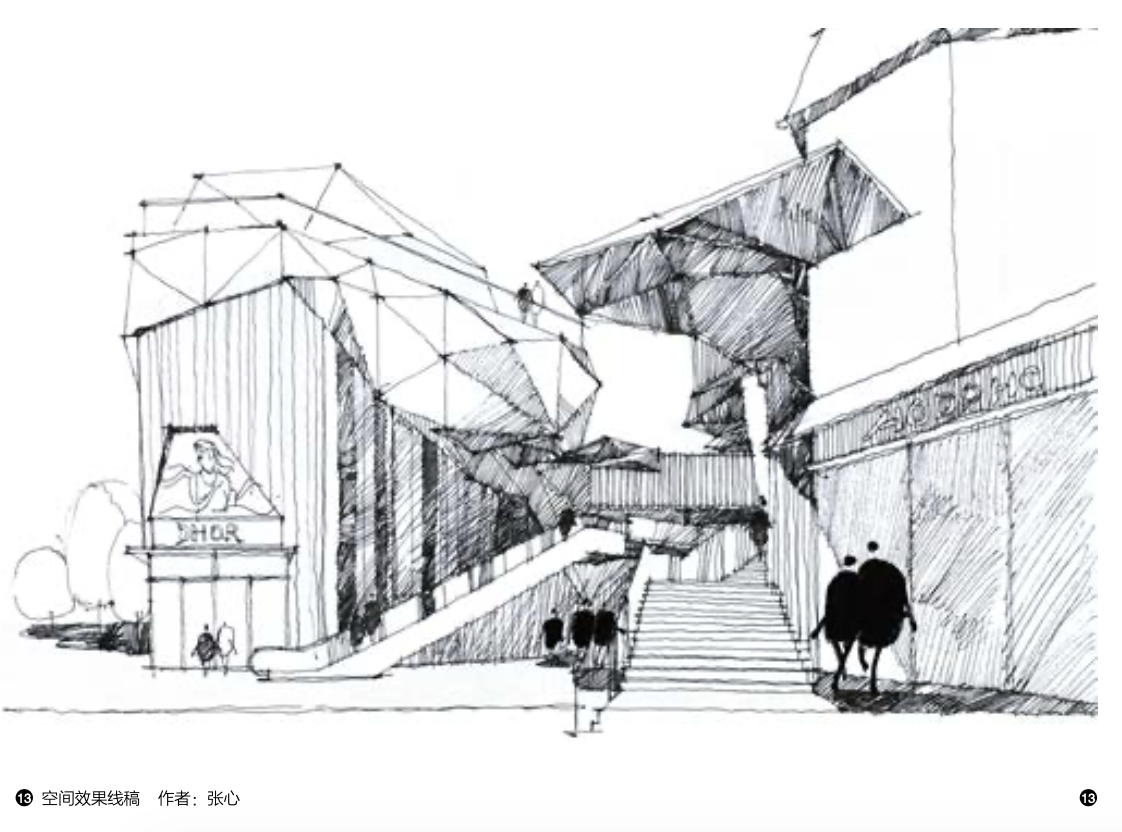 修正液的使用:最后通过修正液来提高光,表现出玻璃的通透感。用于表现建筑的明暗交界线处及地面石材的高光,使画面更加生动,富有细节。