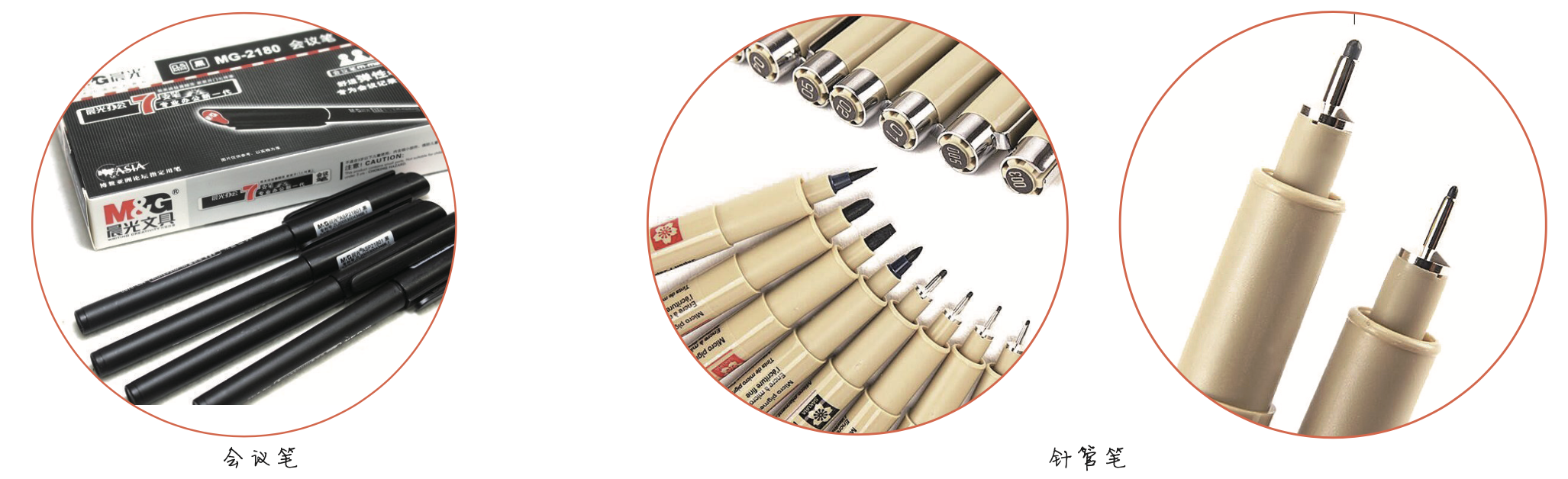 | 1 | 针管笔 | 樱花等品牌,粗细从0.05-0.8,一般0.3-0.5使用比较多。 |