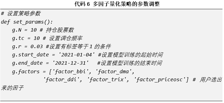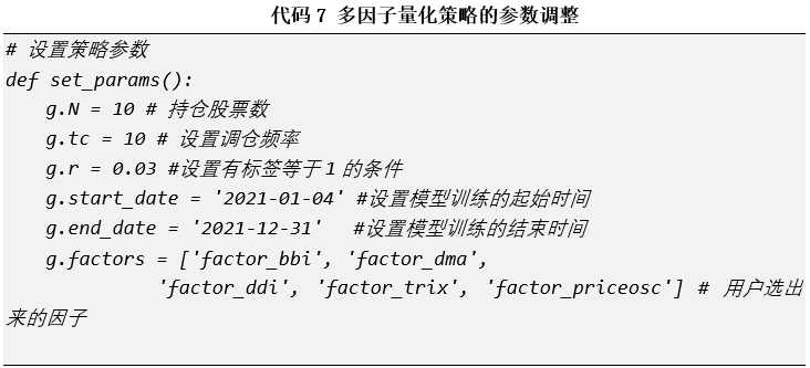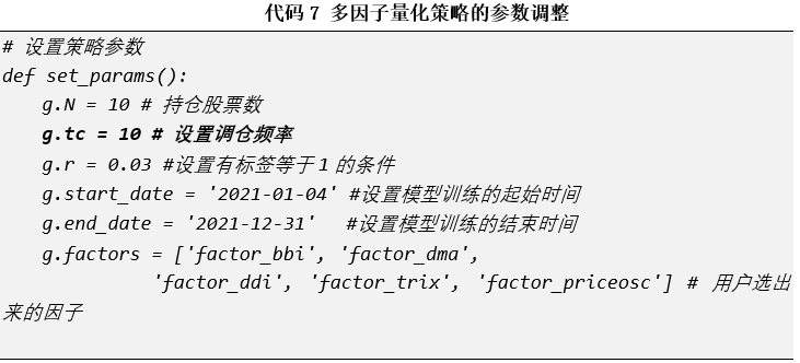 在set_params()中设置模型参数,包括调仓频率,y标签取值,模型的训练区间和因子。