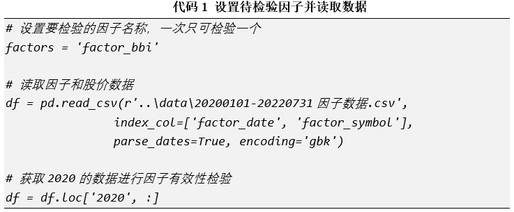 2.在因子有效性.py中,通过设置factors变量设置要检验的因子,并通过read_csv函数读取要检验的因子数据