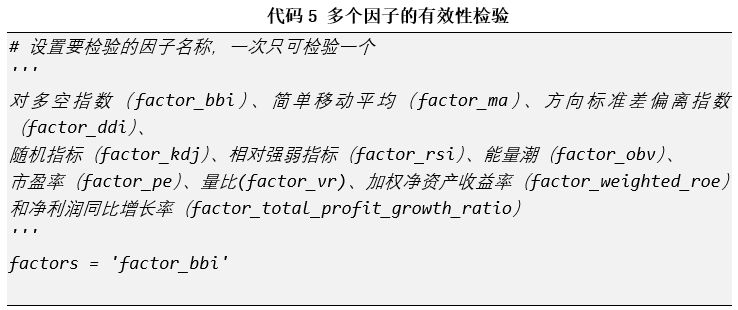 将下列代码中的factor_bbi,分别替换成需要检验的因子代码,即可得到各个因子的IC值大小