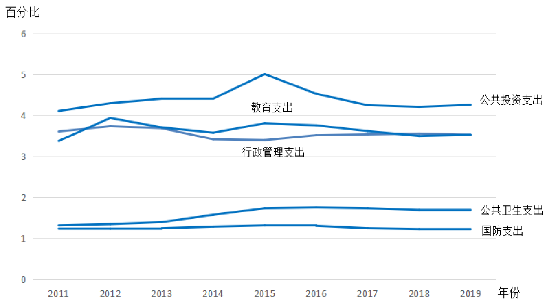 图2 2011年-2019年我国公共购买性支出主要项目占GDP的比重变化