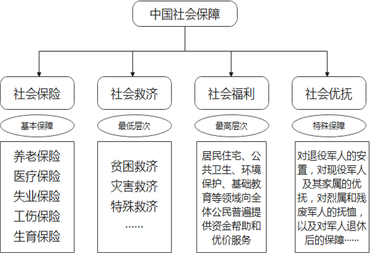 我国社会保障支出主要包括社会保险支出、社会救济支出、社会福利支出和社会优抚支出这四个方面。