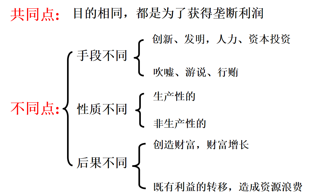 第一,寻利是经济主体通过自身参与市场竞争而获取“经济租”,这种活动不需要借助于政府的干预,是由“看不见的手”引导的;而寻租是经济主体力图使“看不见的人”不起作用,利用政府这只“看得见的手”的干预使自己取得特殊垄断地位,从而获得“经济租”。