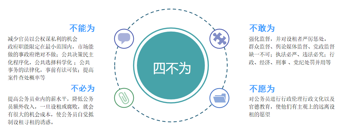 设租总与一定的权力联系在一起。由于政府官员又是权力个体的主要代表,因而设租与“腐败”(Corruption)之间没有实质的区别。因为设租和腐败都是以公共权力谋取私利。